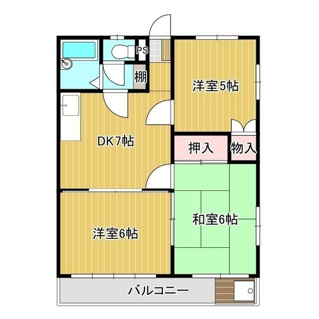 | 間取り | 3DK(DK7 洋6 洋5 和6) | 主要採光面 | 南 |